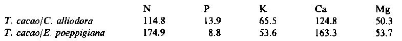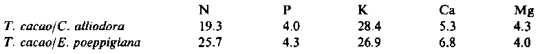 Theobroma cacao shade trees Erythrina poeppigiana Cordia alliodora modelling organic matter nitrogen phosphorus potassium calcium magnesium litter productionPreview