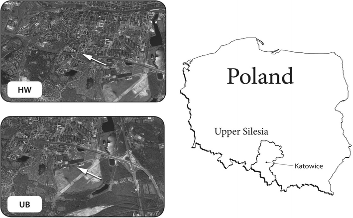 Location of the measuring sites in Katowice