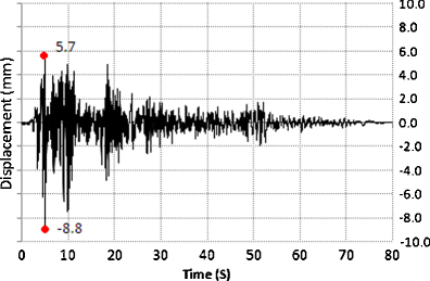Free end vertical displacements of the beam under Kobe earthquake for initial design