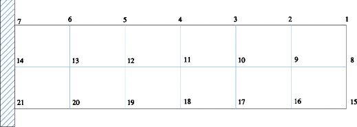 Nodal numbers for comparing the principal stresses for the cantilever beam