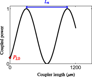 Power coupling ratio as a function of the coupler length for a certain coupler gap