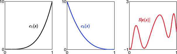 The components c 1(x) and c 2(x) and the system response S(c(x)) are plotted in the domain x ∈ [0,1]