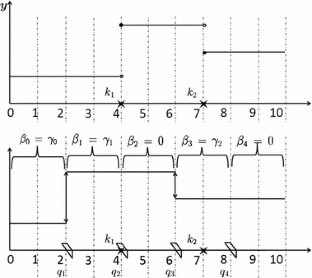 Furthermore, if the change-point \(k_m\) is located in the artificial interval \([1+(i-1)l,il]\) (i.e., the change-point was previously undetected), then the correction vector \({\varvec{\eta }}^{(i+1)}\) has zero components in the last l rows, which implies that \((\varvec{x}_{\mathrm{new}}^{(i+1)})^T{\varvec{\eta }}^{(i+1)}=0\). A similar argument as above yields that \(\hat{\beta }_{\mathrm{new}}^{(i+1)}=\beta _{\mathrm{new}}^{(i+1)}+o_p(1).\) This ends the proof of Theorem 1(b).