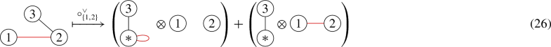 The element \(\varGamma \cdot \mu _{1}\) is the sum over all ways of collapsing a subgraph \(\varGamma ' \subset \varGamma \) with exactly one external vertex (and any number of internal vertices), with result \(\mu (\varGamma ') \varGamma / \varGamma '\). This summands corresponds to contracting all edges between one external vertex and one internal (possibly univalent) vertex.