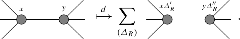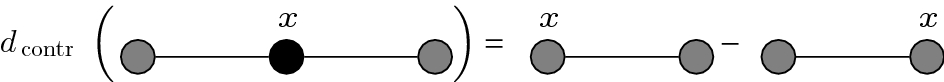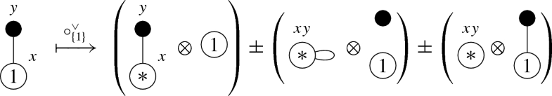 The element \(\mu _{1} \cdot \varGamma \) is the sum over all ways of collapsing a subgraph \(\varGamma ' \subset \varGamma \) containing all the external vertices, with result \(\mu _{1}(\varGamma /\varGamma ') \varGamma '\). The coefficient \(\mu _{1}(\varGamma /\varGamma ')\) can only be nonzero if \(\varGamma \) is obtained from \(\varGamma '\) by adding a univalent internal vertex. A careful analysis of the signs [53, Appendix I.3] shows that this cancels out with the contraction of edges connected to univalent internal vertices from the other two summands, unless both endpoints of the edge are univalent and internal (and hence disconnected from the rest of the graph), in which cases the same term appears three times, and only two cancel out (see [53, Fig. 3] for the dual picture).