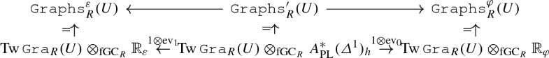 In Sect. 3, we construct the labeled graph complex \(\texttt {Graphs}_{R}\) which will be used to connect \(\texttt {G}_{A}\) to \(\varOmega _{\mathrm {PA}}^{*}(\texttt {FM}_{M})\). The construction is inspired by Kontsevich’s construction of the unlabeled graph complex \(\texttt {Graphs}_{n}\). It is done in several steps. The first step is to consider a graded module of labeled graphs, \(\texttt {Gra}_{R}\). In order to be able to map \(\texttt {Gra}_{R}\) into \(\varOmega _{\mathrm {PA}}^{*}(\texttt {FM}_{M})\), we recall the construction of what is called a “propagator” in the mathematical physics literature. We then “twist” \(\texttt {Gra}_{R}\) to obtain a new object \({{\mathrm{Tw}}}\texttt {Gra}_{R}\), which consists of graphs with two kinds of vertices: “external” and “internal”. Finally we must reduce our graphs to obtain a new object, \(\texttt {Graphs}_{R}\), by removing all the connected components with only internals vertices in the graphs using a “partition function” (a function which resembles the Chern–Simons invariants).