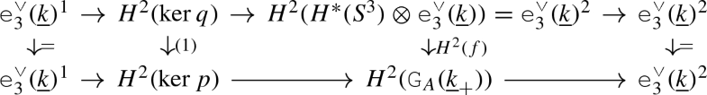 For degree reasons, \(H^{2}(\ker q) = 0\) and so the map (1) is injective. By the four lemma, it follows that \(H^{2}(f)\) is injective. Since both domain and codomain have the same finite dimension, it follows that \(H^{2}(f)\) is an isomorphism. \(\square \)