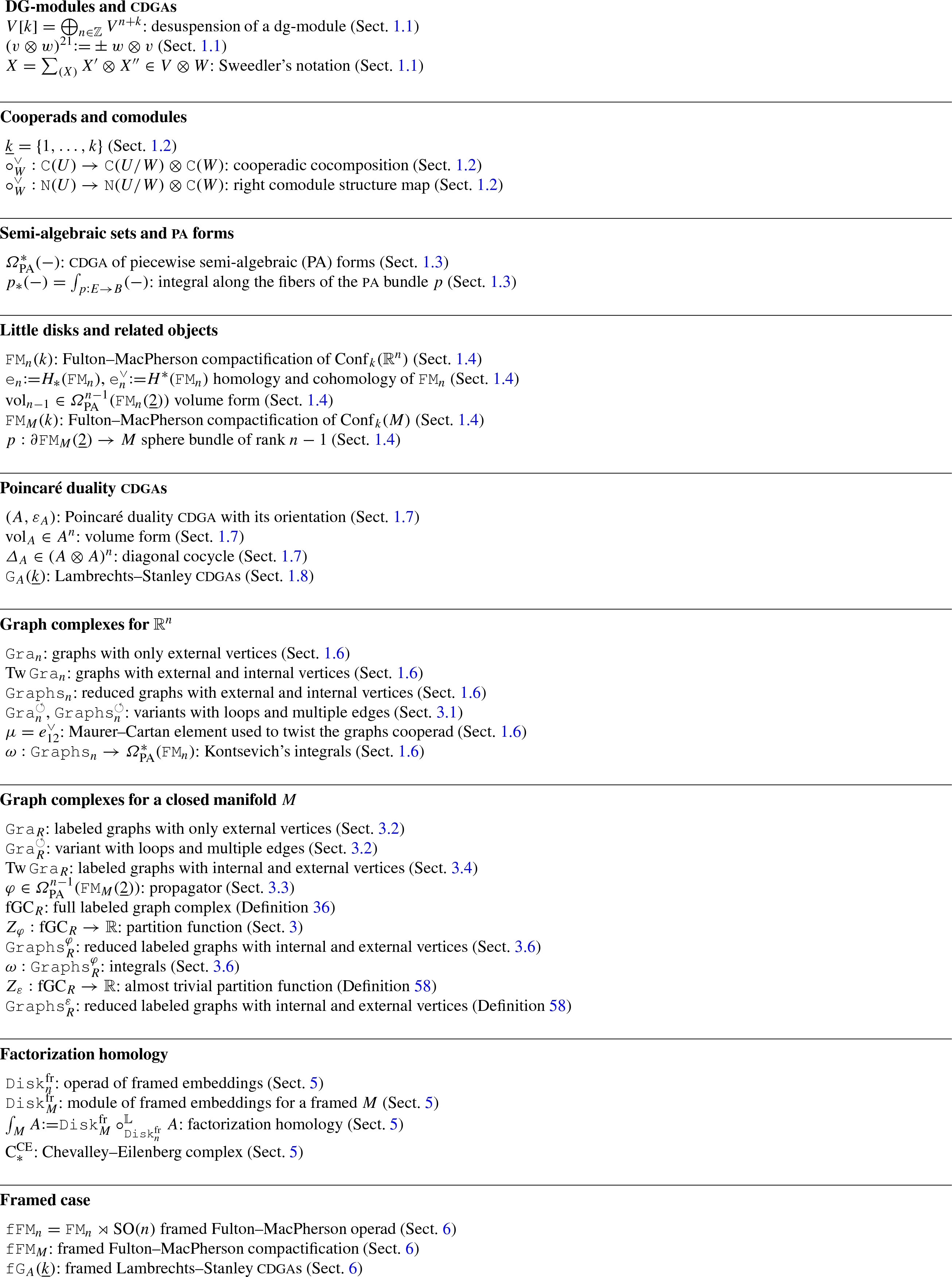 Given an oriented n-manifold M, there is a corresponding right module over \(\texttt {f}\texttt {FM}_{n}\), which we call \(\texttt {f}\texttt {FM}_{M}\) [52, Section 2]. The space \(\texttt {f}\texttt {FM}_{M}(U)\) is a principal \(\mathrm {SO}(n)^{\times U}\)-bundle over \(\texttt {FM}_{M}(U)\). Since \(\mathrm {SO}(n)\) is an algebraic group, \(\texttt {f}\texttt {FM}_{n}\) and \(\texttt {f}\texttt {FM}_{M}(U)\) are respectively an operad and a module in semi-algebraic spaces.