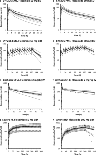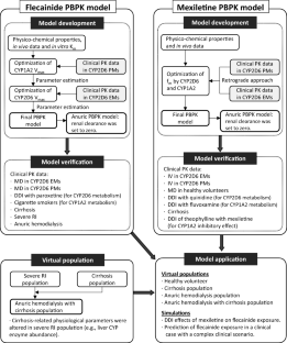 Higher drug concentrations in complex clinical scenarios in which multiple factors such as drug–drug interactions (DDIs) and comorbidities are simultaneously present are not necessarily rationalized in prospective clinical studies. Physiologically based pharmacokinetic (PBPK) modeling and simulation of the anti-arrhythmic drug flecainide, as an example, were utilized to quantitatively rationalize the higher flecainide concentration in a complex clinical case involving end-stage renal disease (ESRD), cirrhosis, and the co-administration of mexiletine, a CYP1A2 inhibitor.