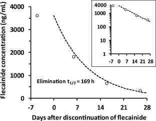Funck-Brentano C, Becquemont L, Kroemer HK, Bühl K, Knebel NG, Eichelbaum M, Jaillon P (1994) Variable disposition kinetics and electrocardiographic effects of flecainide during repeated dosing in humans: contribution of genetic factors, dose-dependent clearance, and interaction with amiodarone. Clin Pharmacol Ther 55(3):256–269