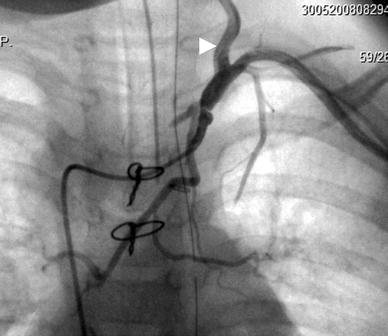 It still is controversial whether an ILSA should be reconstructed. The literature contains little comprehensive study of this particular disease because of its rarity. Luetmer and Miller [1] reported that 5 (17%) of 30 patients with ILSA had symptoms of ischemia in the upper extremity and that another 5 had symptoms suggestive of vertebrobasilar insufficiency. Apparently many surgeons are likely to abandon an LSA reconstruction, preferring to perform a simple ligation to save time and avoid a more complex procedure in the belief that the frequency of steal syndrome will be reduced. However, ischemic symptoms of the upper extremity or vertebrobasilar insufficiency can emerge years after LSA ligation [1, 2].