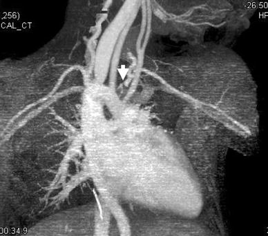 Isolation of the left subclavian artery Right aortic archA 2-year-old boy was referred to our facility for surgical repair of a tetralogy of Fallot (TOF) that had no symptoms suggestive of vertebrobasilar insufficiency or ischemia of the upper extremity. Preoperative angiography showed an absence of the left subclavian artery (LSA) in the early phase and a delayed retrograde flow through the left vertebral artery into an isolated left subclavian artery (ILSA).