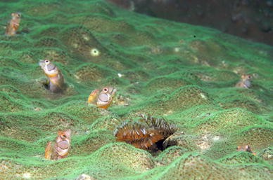 Resident Browncheek Blennies (Acanthemblemaria crockeri) in natural shelters (photo by Octavio Aburto)