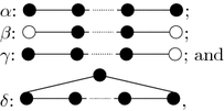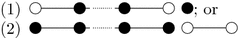 (where additional isolated white vertices may be present). In both cases, we see that \(\vert {\text {supp}}(t)\cap {\text {supp}}(x)\vert =2m-2\). It follows that if \(n=2m\text { or }2m+1\), then \(\mathcal {P}_{\left\{ 2m\right\} }(G,X)\) is totally disconnected. Thus assume that \(n\ge 2m+2\). Denote the m transpositions that x is comprised of by \(x_{1},\ldots ,x_{m}\), where \(\min {\text {supp}}(x_{i})\le \min {\text {supp}}(x_{i+1})\) for all \(i=1,\ldots ,m-1\). We will construct elements \(y_{i}\in X\) for \(i=1,\ldots ,m\) such that