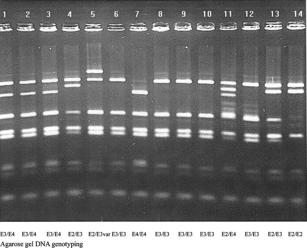 In addition, the possible neuroprotective properties of ApoE ɛ3 allele were described [18]. The pattern of geographical distribution of ApoE ɛ3 and ɛ4 in Europe [13] and ApoE ɛ2 and ɛ4 ethnical predominancies in Africans and Australian aborigines was described too, all concerning the adult population. As mentioned before, the relationship between poor neuropsychological outcome after mild head injury and possession of ApoE ɛ4 was published. Possession of the ApoE ɛ4 allele has also been shown to influence neuropathological findings in patients who die from traumatic brain injury, including the accumulation of amyloid beta protein [12, 15, 16, 17]. The presence of ApoE ɛ4 genotype is also mentioned in relation with increased risk of late onset Alzheimer’s disease and cardiovascular disorders [6, 7, 19, 20, 27].
