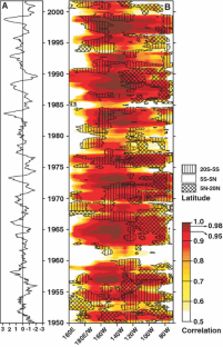 Authors wish to thank P. Yiou for comments on SDC methodology, C. Torrence and G. Compo for wavelet software and the comments of two anonymous referees. This work received partial funding by a NOAA/OGP research grant. X. Rodó was in receipt of a Ramon y Cajal contract of the MCYT and acknowledges support from ICREA institution. M.A. Rodríguez-Arias received funding from the PCB-UB.
