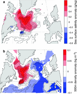 Holliday NP, Hughes SL, Bacon S, Beszczynska-Möller A, Hansen B, Lavín A, Loeng H, Mork KA, Østerhus S, Sherwin T, Walczowski W (2008) Reversal of the 1960s to 1990s freshening trend in the northeast North Atlantic and Nordic Seas. Geophys Res Lett 35:L03614
