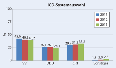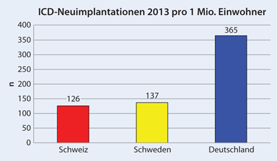 Im zweiten Teil des Jahresberichts 2013 werden die Daten zur Therapie mit implantierbaren Cardioverter-Defibrillatoren (ICD) aus dem stationären Bereich in Deutschland, sowie der Vergleich mit den Ergebnissen aus den Vorjahren bzw. mit den Registern aus Schweden und der Schweiz vorgestellt [1, 2, 3].