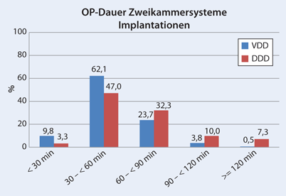 Abbildung 7: Prozentuale Verteilung der Operationszeiten bei der Implantation von Zweikammersystemen bezogen auf alle Implantationen von Zweikammersystemen