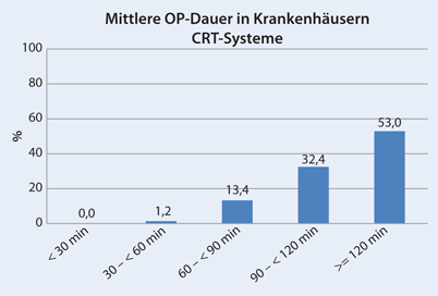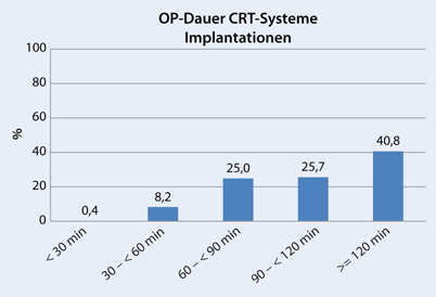 Abbildung 8: Prozentuale Verteilung der Operationszeiten bei der Implantation von CRT-Systemen bezogen auf alle Implantationen von CRT-Systemen