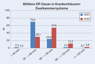 Abbildung 10: Prozentuale Verteilung der OP-Dauer bei der Implantation von Zweikammersystemen bezogen auf die Mittelwerte der Krankenhäuser