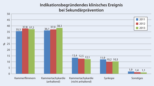 | Führende Indikation für ICD-Implantation | 2011 | 2012 | 2013 | |||