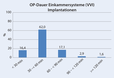 Abbildung 6: Prozentuale Verteilung der Operationszeiten bei der Implantation von Einkammersystemen (VVI) bezogen auf alle Implantationen von Einkammersystemen (VVI)