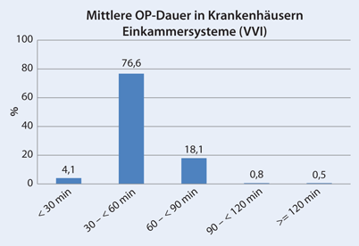 Abbildung 9: Prozentuale Verteilung der OP-Dauer bei der Implantation von Einkammersystemen (VVI) bezogen auf die Mittelwerte der Krankenhäuser