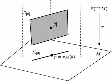 About the proof The justification of Theorem 3 is rather trivial. In fact, it is just a matter of interpretation of the classical proof of the PMP [18] (see also [13, 15]). Recall that geometrically the PMP says that at each point of the optimal trajectory \(\varvec{q}(t)\), the cone \(\varvec{\mathcal {K}}_t\subset \mathrm {T}_{\varvec{q}(t)}(Q\times \mathbb {R})\) approximating the reachable set can be separated, by a hyperplane \(\varvec{\mathcal {H}}_t\subset \mathrm {T}_{\varvec{q}(t)}(Q\times \mathbb {R})\), from the direction of the decreasing cost (cf. Fig. 2). Thus, in its original sense the PMP describes the evolution of a family of hyperplanes \(\varvec{\mathcal {H}}_t\) (i.e., a curve in the manifold of contact elements of \(Q\times \mathbb {R}\), identified with \(\mathbb {P}(\mathrm {T}^*(Q\times \mathbb {R}))\)) along the optimal solution. This evolution is induced by the flow of the optimal control on \(Q\times \mathbb {R}\). From this perspective, the only ingredient one needs to prove Theorem 3 is to show that this flow induces a contact evolution (with respect to the natural contact structure) on \(\mathbb {P}(\mathrm {T}^*(Q\times \mathbb {R}))\). It is worth mentioning that the covector curve \(\varvec{\varLambda }_t\in \mathrm {T}^*(Q\times \mathbb {R})\) from the standard formulation of the PMP is nothing else than just an alternative description of the above-mentioned curve of hyperplanes, i.e., \(\varvec{\mathcal {H}}_t=\ker \varvec{\varLambda }_t\) for each time t. Obviously, there is an ambiguity in choosing such a \(\varvec{\varLambda }_t\), which is defined up to a rescaling.