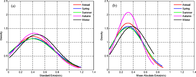 Two statistics of standard error (SE) and mean absolute error (MAE) were used here, and the specific methods can be found in Soukissian and Karathanasi (2016).