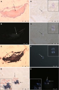 The co-localisation of aluminium (purple) and amyloid (red) in human brain tissue