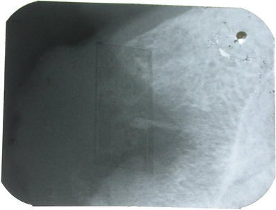 In periapical radiography radiolucent bone resorption with nonsclerotic and well-defined borders and 2 × 3 cm under the tumor-like lesion