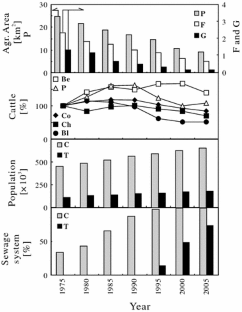 Tabayashi Y, Yamamuro M. 2009. Changes in the impact of anthropogenic effects on river water quality during the last 50 years in Japan. Wetl Ecol Manag 17:409–15.