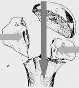 zertrümmerter Tuberkelregion mit fehlender medialer Abstützung,