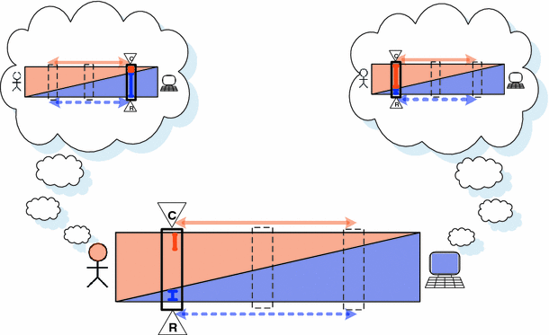 It can be helpful to distinguish between the actual control, which a most objective observer from outside would determine, and notional control, which is yet to be established. In this tension field between actual and notional (a term that goes back to a concept by Schutte and Goodrich 2007), a control token can be a representation of the notional control. Just like in mediaeval times a crown or a sceptre indicated authority, responsibility and power, a control token can be understood as symbol for the notional or desired distribution of control between two actors. Control tokens are not the control itself, but are a representation of the notional control that points towards the actual control. An example for a control token is the graphical marker of who is in control in an automation display. The location of the control token can be applied in the diagram as well. It is symbolized by the “C” marker. In certain control situations, it can make sense to split up the control token and differentiate between an explicit display of control and an action for the exchange of control. An example for this would be a situation, where the human does an action for the exchange of control, like pressing a button, and takes this already for the actual exchange of control, without realizing that the machine might not be able to actually accept and execute the control.