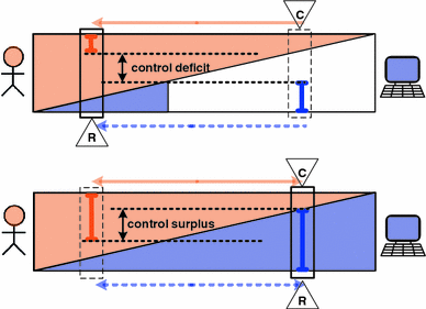 Top Deficit of actual control, e.g. in case of a refused transition. Bottom Surplus of actual control, e.g. in case of a missed transition