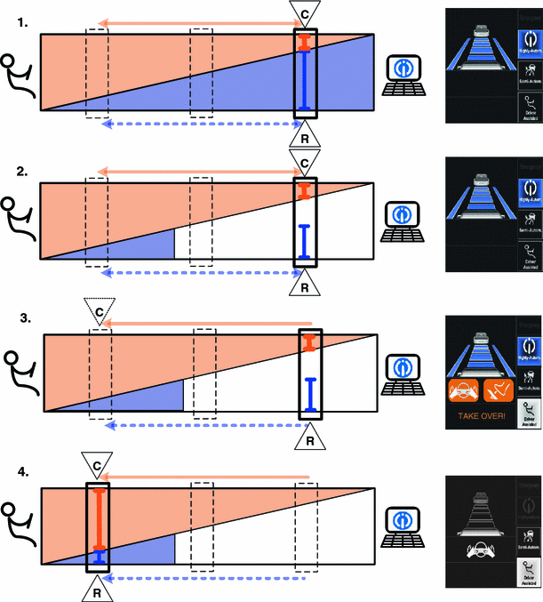 Left Ability, authority, responsibility and control in highly automated driving. Example HAVEit. Right Corresponding automation display in the research vehicle FAS Car