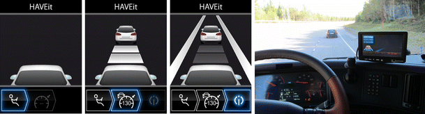 Emergency situation in HAVEit. Right Corresponding automation display in the research vehicle FAS Car
