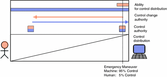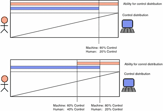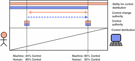 The distribution of responsibility and authority and the control changes over times can be designed in many different ways, but it is highly desirable to ensure certain principles. Miller and Parasuraman (2007), for example, demands that “human–machine systems must be designed for an appropriate relationship, allowing both parties to share responsibility, authority, and autonomy in a safe, efficient, and reliable fashion.” This relates to other interaction guidelines such as “the human must be at the locus of control” (Inagaki 2003) or “the human must be maintained as the final authority over the automation” (e.g. Inagaki 2003).
