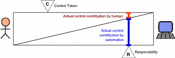 Responsibility, control token and actual control in the assistance and automation scale, here with an inconsistency between control token and actual control