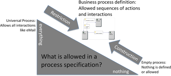 In the following, both approaches will be explained in detail. In sub Sect. 3.2, the stepwise reduction of interaction between actors or acting components is explained. In Sect. 3.3, the stepwise creation of a communication-based process model is detailed. In both cases, actual or envisioned work processes need to be represented in a transparent and traceable way.