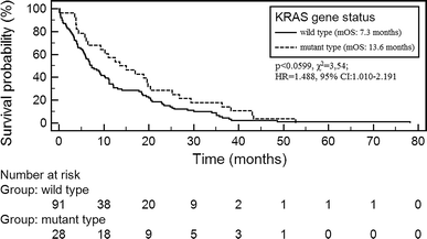 Overall survival probability in NSCLC patients with different status of KRAS gene