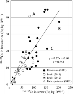 Fukushima Prefecture, Ministry of Agriculture Forestry and Fisheries (MAFF) (2013) Factors and measures productive of the rice containing high radioactive Cs. http://wwwcms.pref.fukushima.jp/download/1/youinkaiseki-kome130124.pdf (in Japanese)