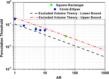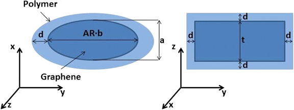 As far as the single-layer graphene thickness is concerned, reports from literature show a distinct variation of the measured thickness of single layer graphene, which could be attributed to the measurement method and the graphene purity [27, 28, 29, 30, 31, 32, 33, 34]. It has been stated that the thickness of a single-layer could range between 0.3 nm and 1.6 nm. However, in accordance with the thickness measured by the imaging mechanism of tapping mechanism AFM, it was estimated around 0.4 nm [35]. It has been shown from SEM images that graphene particles could have several shapes, which are related to the manufacturing of the graphene and the breakage of the sheets during the homogenisation/dispersion of graphene/polymer materials. Generally, taking into account that the most common shapes able to describe a 2D structure are the rectangle and the ellipse as well as that these shapes have been considered for the prediction of percolation threshold. These two shapes are chosen for exploring their effect on the conduction of graphene/polymer nanocomposites.