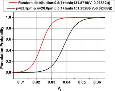 Finally, the methodology was used in order to predict the percolation of threshold of two similar material systems whose electrical response was studied experimentally, prepared with different manufacturing process, so as to explore the effect of material preparation on the percolation threshold, the percolation probability and the adaptability of the proposed simulation methodology. The percolation threshold was calculated with important accuracy, exhibiting error of 0.44 % of the analytical result compared to the experimental data, for the case of the PVDF/Graphene nanocomposite [40], while a study on the effect of the filler distribution on the percolation probability of PVDF/xGnP nanocomposite [41] with volume fraction equal to the experimentally obtained percolation threshold was made, arising the significance of including the percolation probability as characterization quantity. It is suggested this model’s application to be extended to the simulation of the electrical response of experimental case study nanocomposites, while the obtained behaviour should be related to the probability of achievement under real manufacturing and experimental conditions.