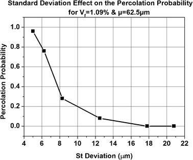Standard Deviation effect on the percolation probability for Vf constant to the experimental percolation threshold found on the work [41] and average μ = 62.5 μm