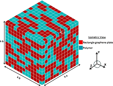 Conductive polymers have been extensively studied for their potential applications in light emitting devices, batteries, electromagnetic shielding, and piezoresistive sensors. At first, carbon black [1, 2], metallic powder [3, 4, 5], polyaniline [6] and graphite [7] were used as electrical reinforcement in polymer, but high concentration was necessary to achieve the percolation threshold which endangered the mechanical properties of the nanocomposites due to the formation of agglomerations. Later, several researchers proposed polymer nanocomposites reinforced with graphene nanoparticles and its derivatives (expanded graphite, graphene nanoplatelets, graphite oxide, functionalized graphene/expanded graphite), which are able to form more stable 3D conductive networks in lower volume content as a consequence of their high aspect ratio (AR-ratio of main particle dimension to minor one) [8, 9, 10, 11, 12, 13, 14, 15]. Comparing the available experimental data in terms of percolation threshold varied by the filler aspect ratio, it could be easily noted its high dependence on the nanocomposite’s manufacturing process (it affects the filler distribution and orientation as well as the formation of agglomerations), while for a given production methodology and materials constituents, the percolation threshold is not a deterministic quantity but a probabilistic one. This notice could lead to the conclusion that any percolation threshold stated is a misleading achievement if the material characteristics, manufacturing process and the probability of conductance are not clearly mentioned. In this field, the simulation approaches of the nanocomposite’s electrical response could be a useful prediction tool on the full electrical characterisation of these materials taking into account the probabilistic nature of their response, since huge statistical samples could be studied much quicker and cheaper than following an experimental procedure.