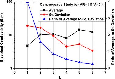 Convergence study on the size of the representative volume for the case of the graphene filler with aspect ratio = 1 and Vf = 0.4