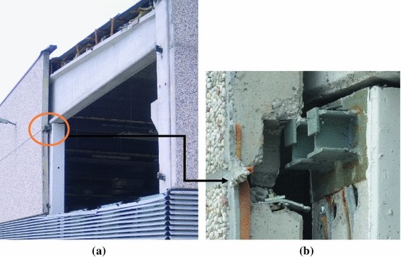 Restricting the focus to precast frames, the typology which is most commonly used in Europe, evidences of very good structural behaviour go hand in hand with reports of collapses, as in the already mentioned cases of Friuli and Kocaeli Earthquakes. For this kind of structures, recent evidence after the 2009 L’Aquila Earthquake (Monitoring and Information Centre (MIC) 2009) seems to demonstrate that the behaviour of such structures is satisfactory, whereas some problems exist with the non-structural components connections, in particular with the heavy cladding elements as was reported by Toniolo and Colombo (2012).