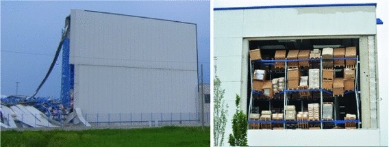 The field visit revealed that the large flexibility of tall storage racks led to hammering against the main structure and the concrete claddings, which ultimately caused their failure. The provisions for the design of a racking system should exclude the possibility of attaching the steel racks to the structure or to the claddings, and adequate clearances should be provided to exclude the likelihood of hammering.